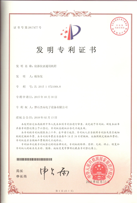 儀器儀表通用機箱發(fā)明專(zhuān)利證書(shū) |